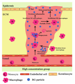 作用机制与效果: 生物活性玻璃通过多种途径促进慢性创面愈合,其作用机制包括:
